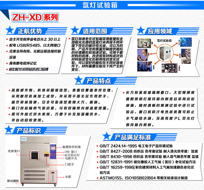 氙燈老化箱采用能模擬全陽光光譜的氙弧燈來再現(xiàn)不同環(huán)境下存在的破壞性光波,可以為科研、產(chǎn)品開發(fā)和質(zhì)量控制提供相應的環(huán)境模擬和加速試驗。